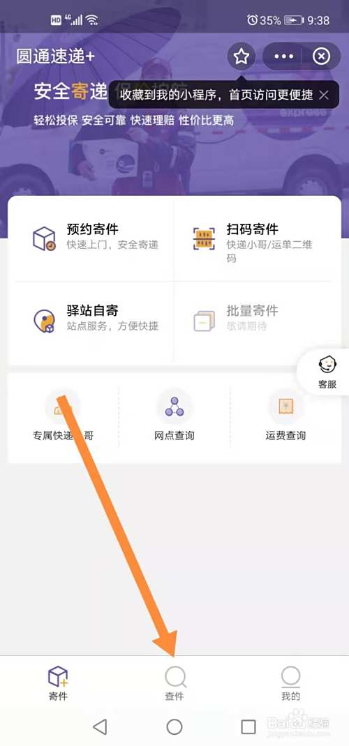 第四步,进入“圆通速递”的页面后,点击“查件”