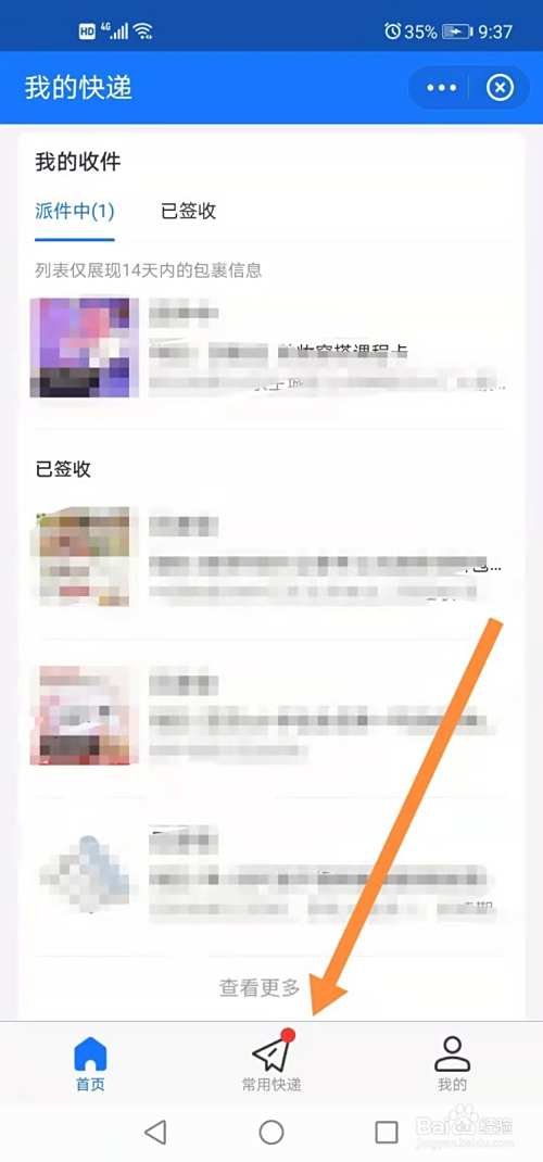 第二步,在“我的快递”页面,需要点击底部“常用快递”