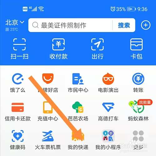 第一步,手机登录支付宝app,进入首页后,点击“我的快递”