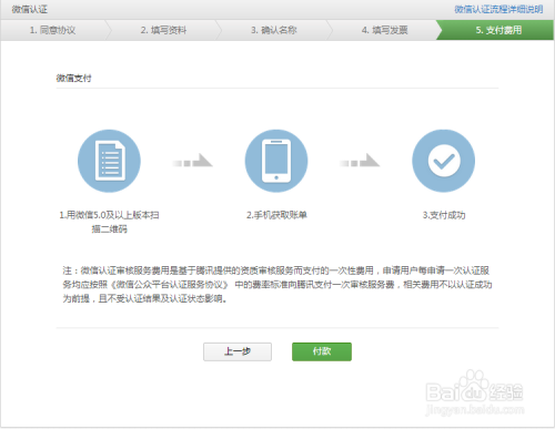5)支付审核费用,目前只支持微信支付。支付过程如下: