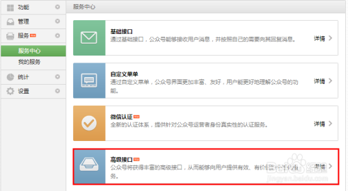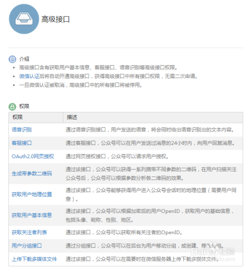2、通过微信认证的服务号,将自动开通“高级接口”中所有接口能力。