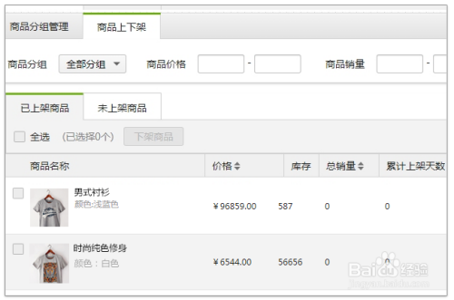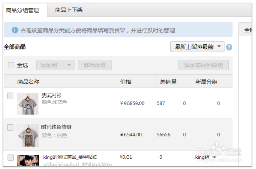 2. 选择完货架之后,商家可以将分组管理里面的商品添加到货架中。