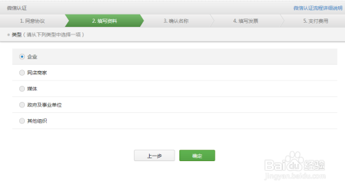 2) 填写资料:选择认证主体类型,提交相应的认证材料。