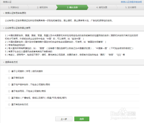 5) 申请认证资料(包括申请认证名称)重填三次都不符合规范。