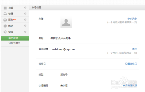 1) “设置->账户信息->认证情况“点击“申请微信认证”进入。