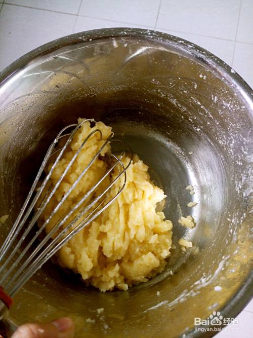 第三个鸡蛋要搅成蛋液,慢慢加,主要看面糊的湿干程度,越干里面的空隙就越小