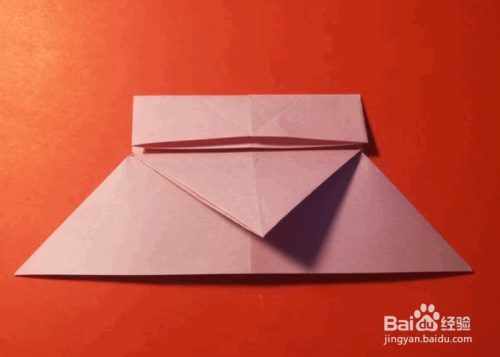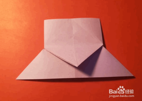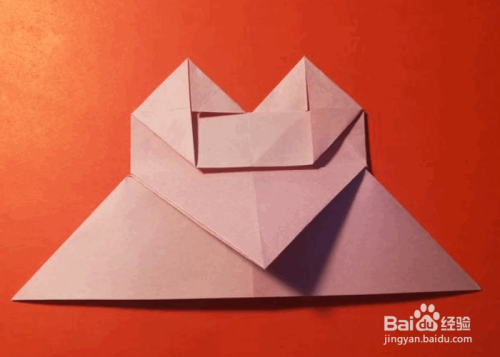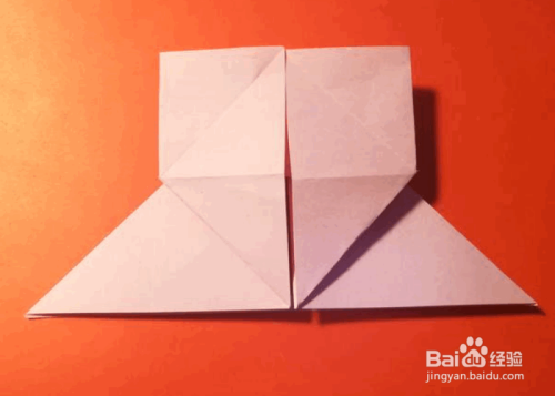 轻轻向上支撑折纸的两侧,使折纸的左右两侧形成等腰直角三角形,如图所示。