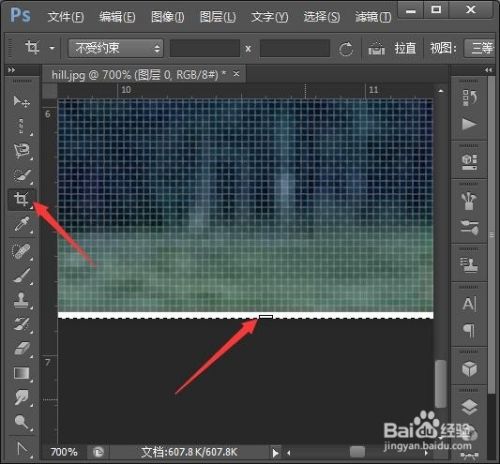 因为底部有一条白边,所以先用放大镜工具放大图片,再点击裁剪工具,将底部的白边裁掉。