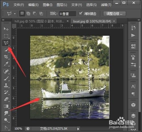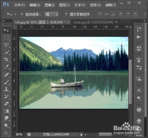 另外打开小船素材,用多边形套索工具抠出小船,按Ctrl+C复制,再回到前面的图像中按Ctrl+V粘贴。再设置一点不透明度。作品就完成了。