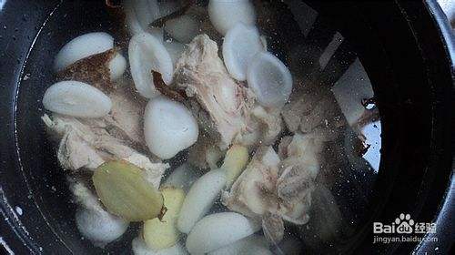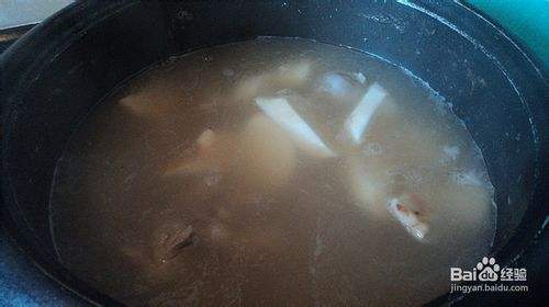 然后把淮山放入再转大火煮沸半小时即可放盐、胡椒粉、少许鸡精调味饮用。