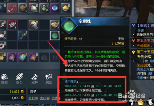 空明珠有使用期限,在某一段时间内使用可以获得所有宝藏,超出这个时间段获得的宝藏就会很少。