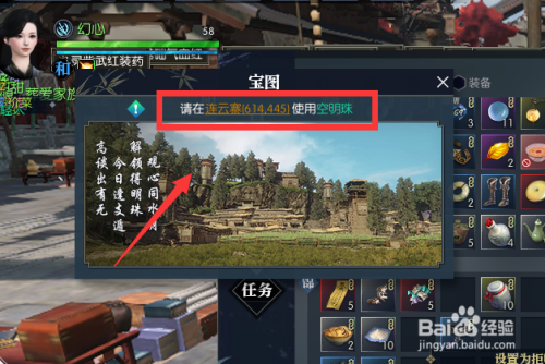 右键点击后界面出现宝图,并显示了宝藏的具体坐,点击后即可自动前往宝藏所在地。