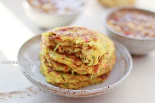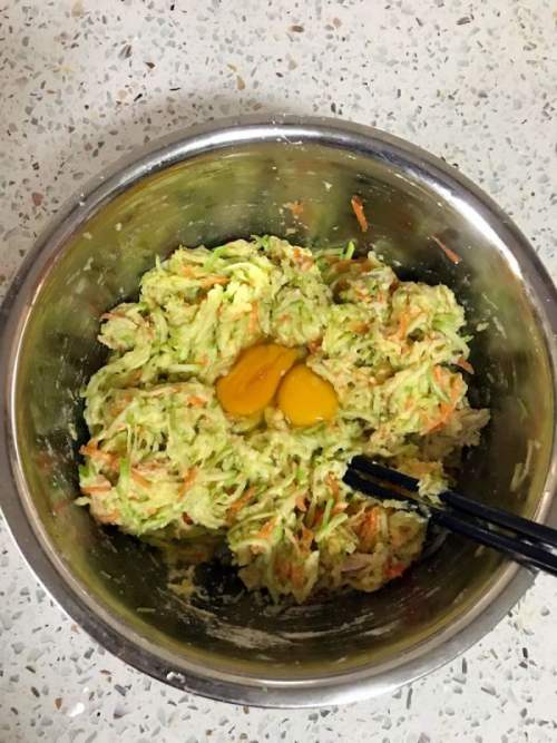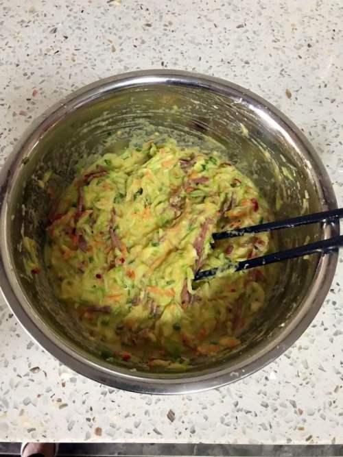 西葫芦不光炒着吃爽口,用来煎饼也是可口。加了玉米面更是锦上添花。
