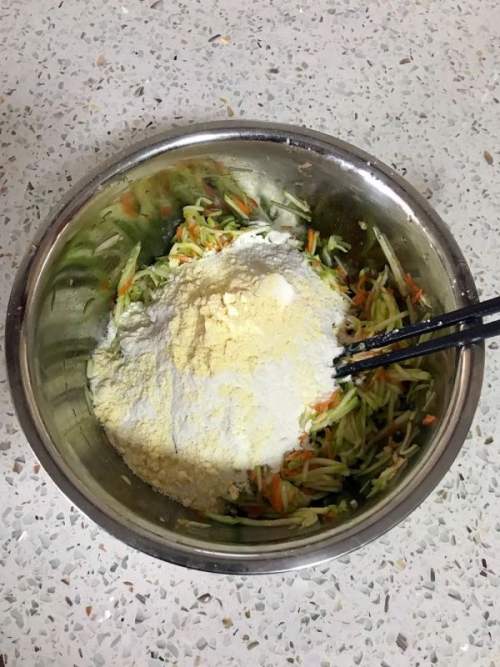 将西葫芦和胡萝卜擦丝加盐刹出水备用