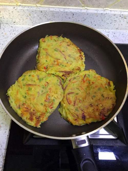 平底锅放少许油,五成热下入面糊,小火慢煎。