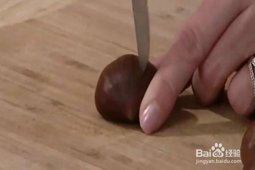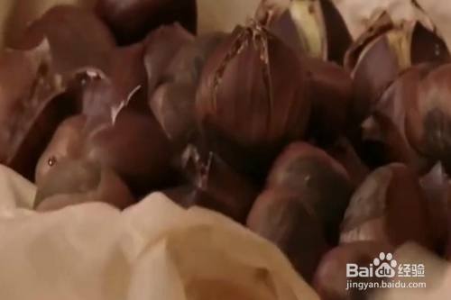 如果感觉栗子皮难剥,可以再把栗子放入热水中煮一会,用刀切一个小口,从切口处剥开,果仁和皮就会自动分离了。