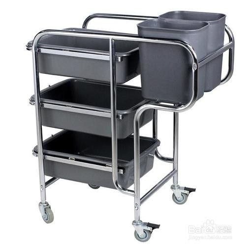 撤台:就是当客人吃完饭之后,一般是需要传菜员把餐具撤下,送到后厨交给洗碗的阿姨清洁。这里一般是需要撤台车,一般撤台车有几个槽子是用来装盘子和碗筷的。然后车上会有两个小筒,一个是用来装干的垃圾的;另外一个就是装客人剩的饭菜和菜汤的啦。