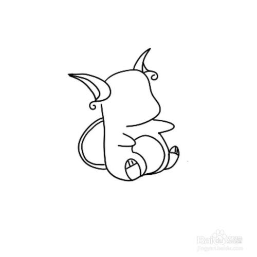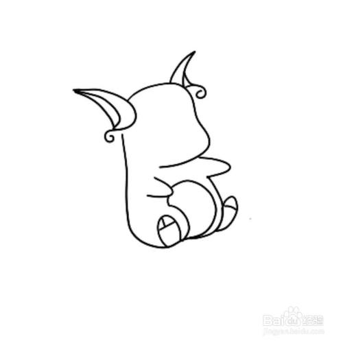 从雷丘的小屁股那里起笔画两个平行弧线,画的细点。