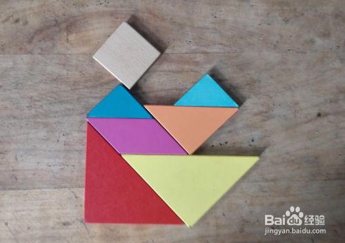 摆上正方形,放在左侧小三角形的下面挨着,如图。
