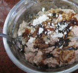 肉馅内加入盐,鸡精,味精,盐锔鸡粉,生抽,老抽,蚝油。