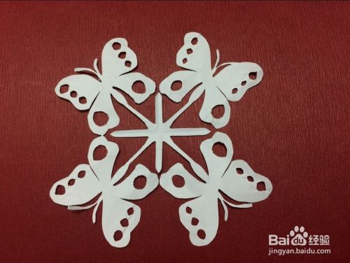 全部剪好后,慢慢展开,漂亮的4只蝴蝶就完成。