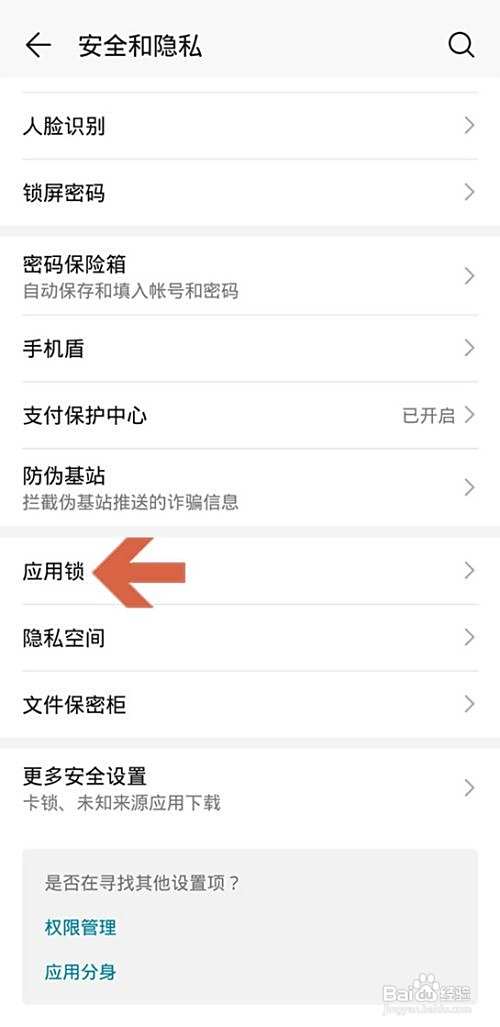 点击安全和隐私页面中的【应用锁】。