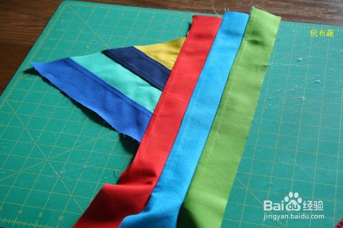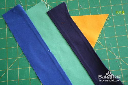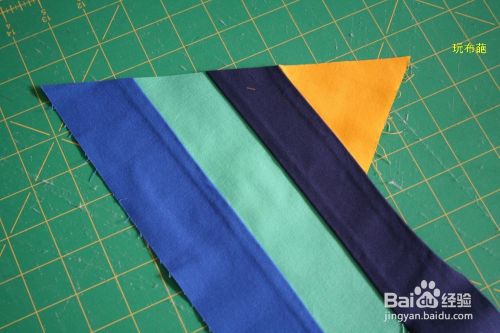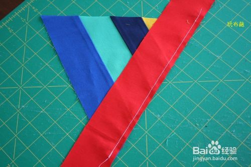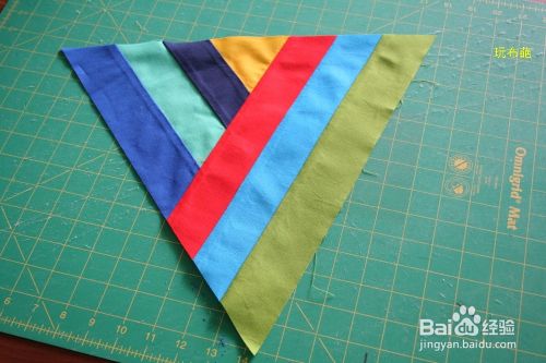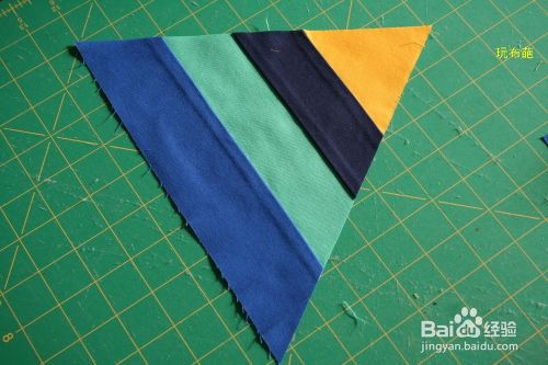 然后重复以上步骤,在三角形右边同样拼出三条布。