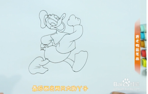 再画出唐老鸭的两只大脚丫子,屁股上的毛发注意画一下;