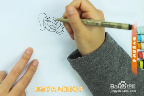 先画唐老鸭的脑袋,别忘画了头上戴的帽子;