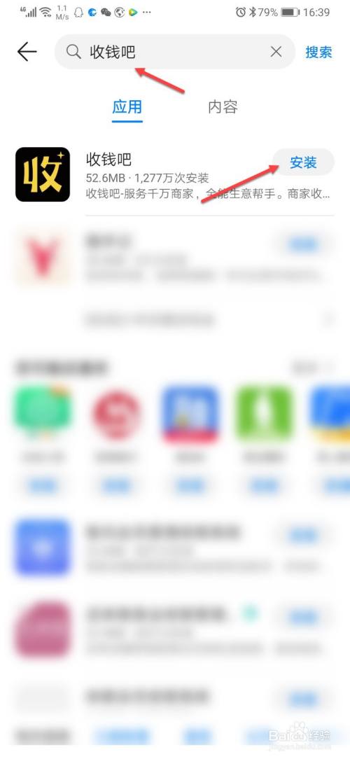 2.输入收钱吧,点击安装。