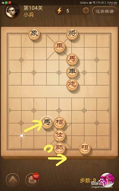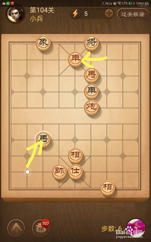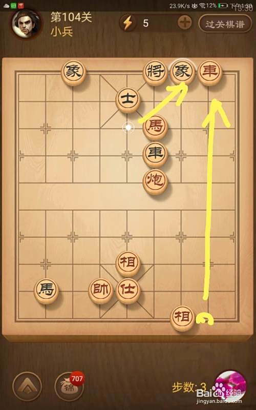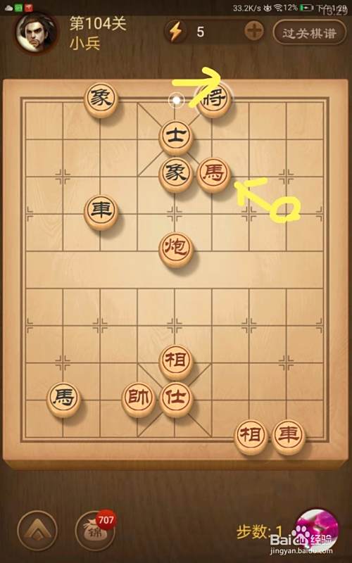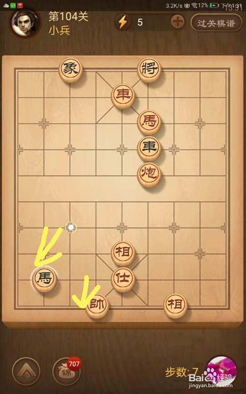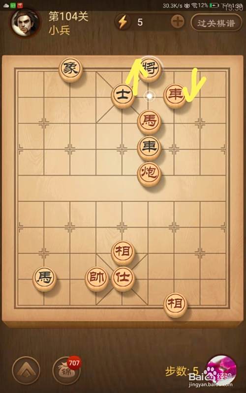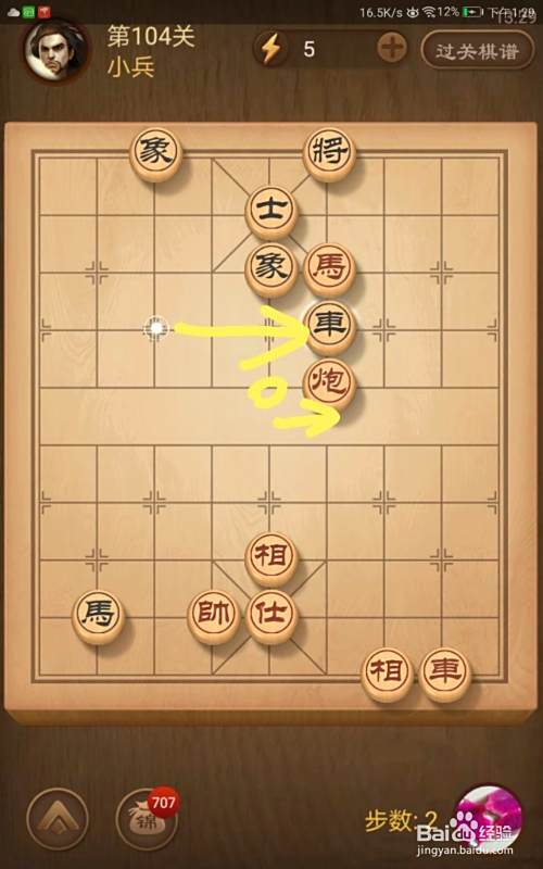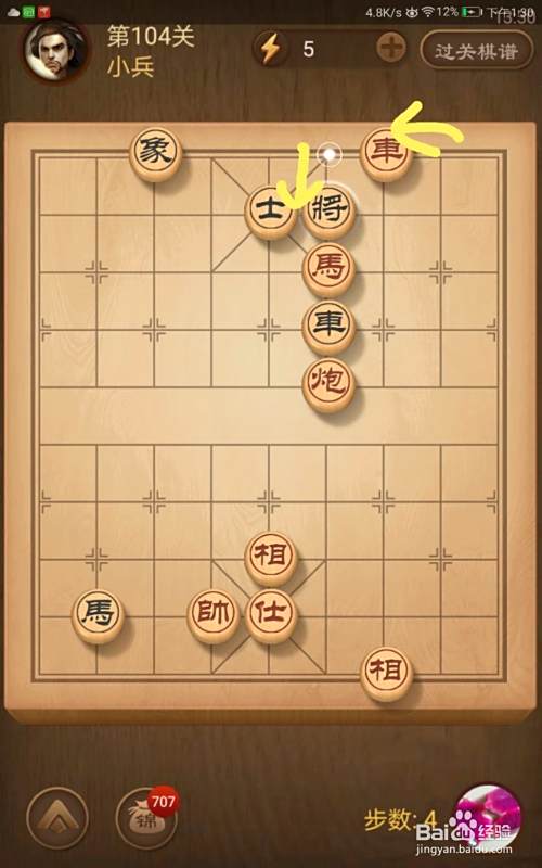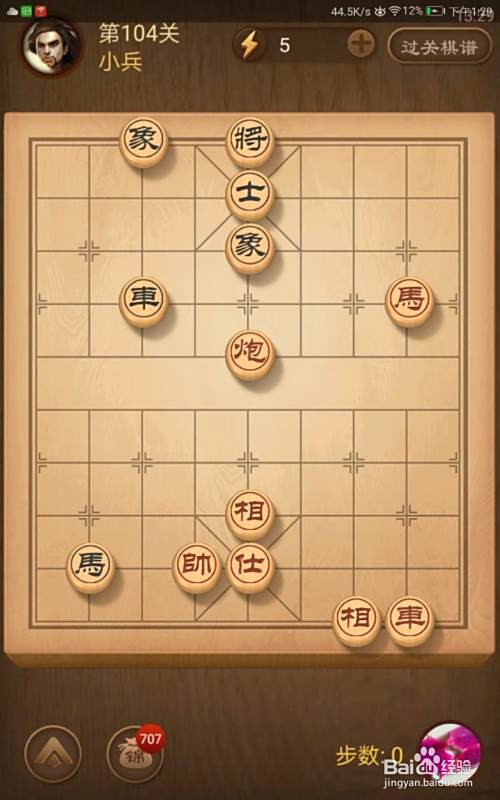 进入了关卡页面,选择第104关,棋局如图所示。我们在简介中已经分析了我们必须步步紧逼才可以获胜。