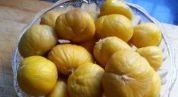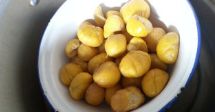然后将板栗捞出放入凉水中浸泡片刻(这样做是为了让板栗比较容易剥壳,热胀冷缩嘛)
