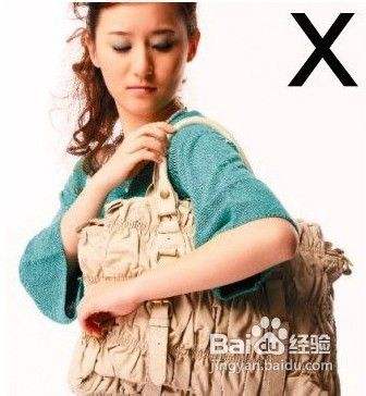 把手短的包包,多半仅能手提,有些美眉为了图个方便,直接挂在肩膀上,整个袖子卡住,美感减分不少哦。