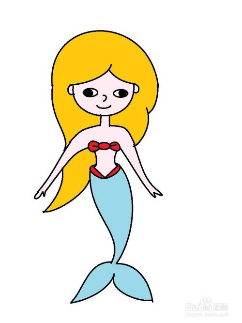 最后涂上颜色,这样,简单又好看的美人鱼就画好了。