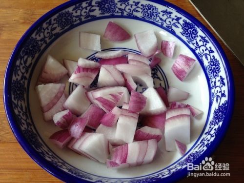 洋葱切成小块,洋葱搭配牛肉可以使牛肉肉质软嫩,香味浓郁