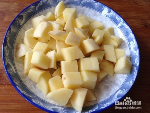 土豆先切成厚片再切成粗条最后切成小一点的块,土豆底部先切去一片,这样土豆会放的平稳,不管切丝、切片、切块都会很安全