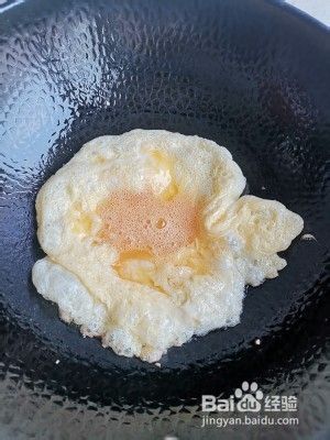 先把鸡蛋炒好,不要炒散,炒成鸡蛋饼,然后用铲子在锅里切几下就可以