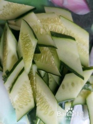 黄瓜切菱形片备用,木耳泡发