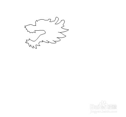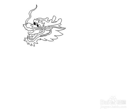 再在龙头的轮廓线上画出眼睛,龙须,龙角,嘴巴等结构,如图所示: