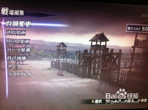 战场编辑:编辑模式,包括变更台词、地图内武将变更、战场BGM变更、自我评价以及存档