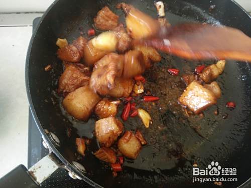 然后混合肉片翻炒均匀,盖上盖子用小火焖。