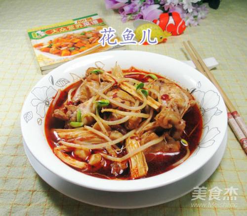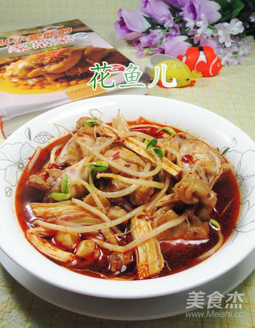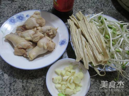 食材:鸡翅根(已清洗焯水)、腐竹(已泡发清洗)、黄豆芽(已清洗)、蒜头(已切碎)、油辣椒