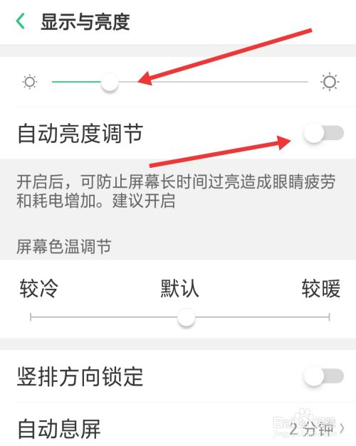 可开启【自动调节亮度】按钮,日常防止眼睛疲劳和耗电过多。