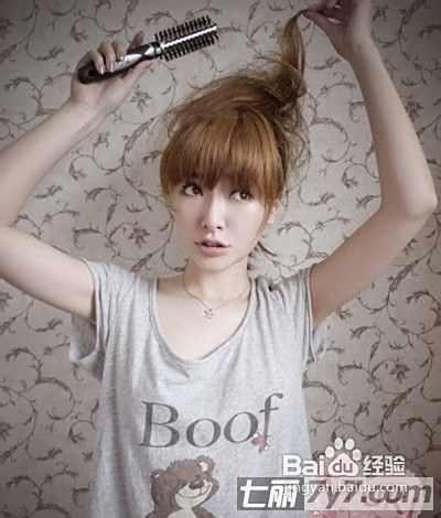一定要躲用几个夹子把多余的头发固定好,尽量把丸子做圆一点,再用手轻轻拉松,营造蓬松自感。