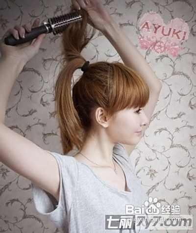 再把扎好的马尾辫分成两份,分开进行操作,用梳子先将上面一部分打毛。