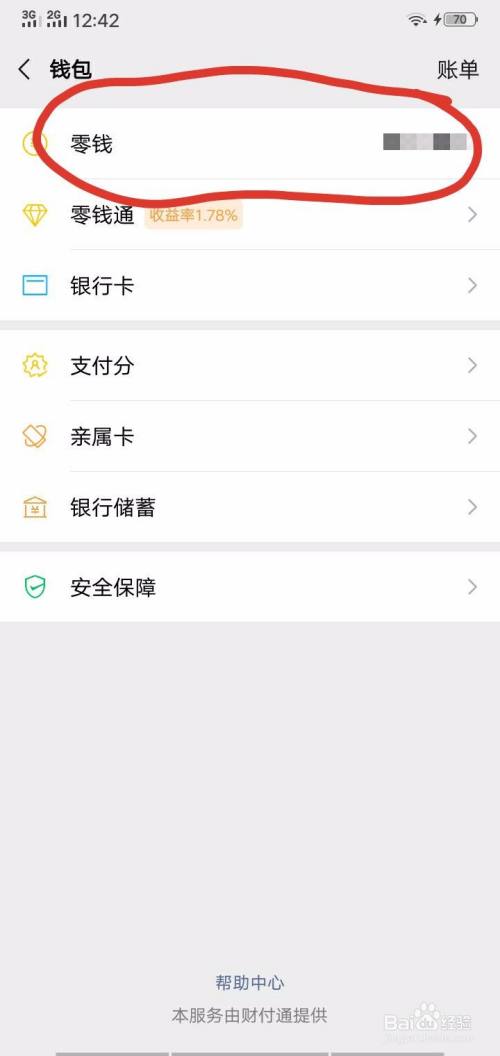 在钱包的界面上需要点击零钱的选项,如图所示。
