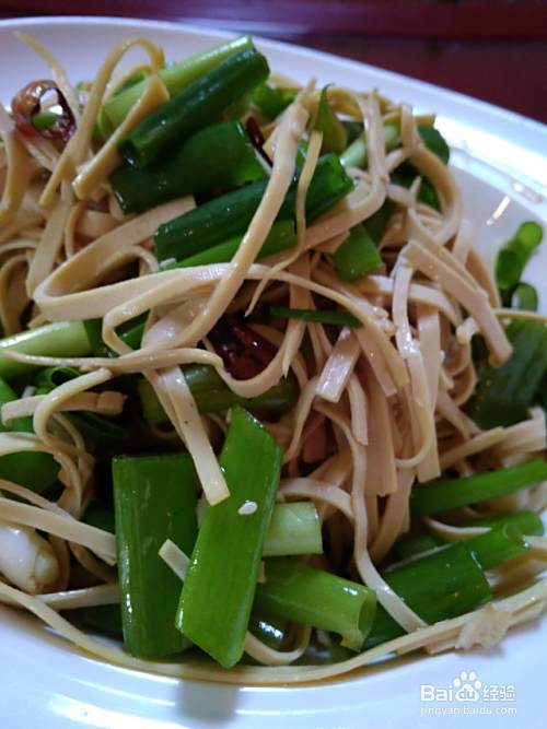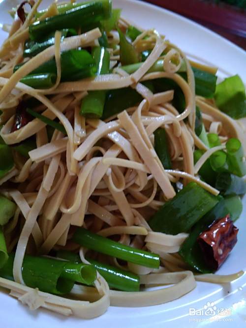 辣椒,切好,放在豆片上,浇入花椒油。加盐适量。