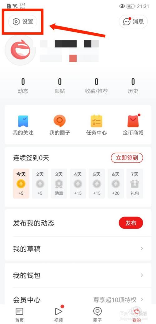 然后在APP我的界面点击左上方设置。