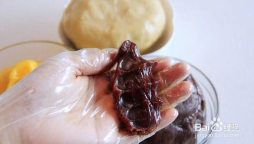 红豆糊会越来越稠,并且翻动时有一定助力,当翻炒至豆沙不粘锅底可以抱团了,并有少量油析出时即可,此时用刮刀按压会有一定的硬度,用手能轻松捏出小团,红豆馅就炒好了。