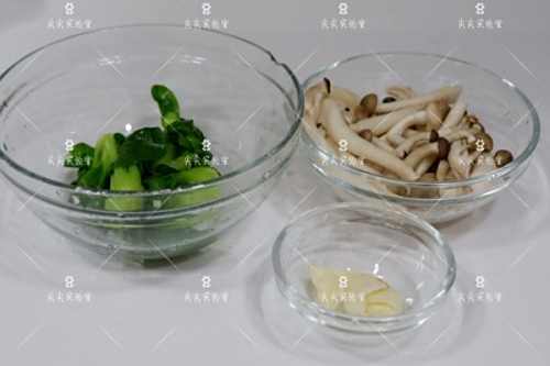 1准备食材;油菜洗净泥沙;蟹味菇摘成小条